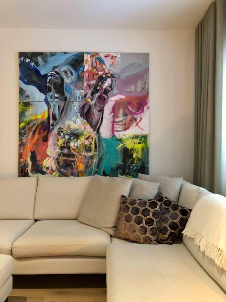 These works reflect dynamic movement- an expanse of variants committed to canvas. Juhani’s ability to fix that which is fleeting and ever-changing to a static moment is a testament to his skill as a painter and his in depth knowledge and committed study as an artist. To wrangle and rope the relentless chaos of any subject matter and tie it to the posts of vivid colour and bold, present shape is what, to my mind, elevates him to the well-deserved title of maestro. His works bring me continued joy as they shift and move along with me.
